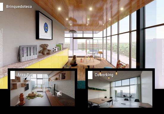 O condomínio oferece uma área de lazer de 1.200 m² no rooftop, incluindo salão de festas, academia, piscina, bar, coworking, espaço pet e muito mais, garantindo um espaço completo de entretenimento e comodidade para os moradores. As lojas, com 66 m² e mezanino adicional de 30 m², são ideais para atender às demandas locais, somando valor à comunidade e ao próprio residencial.