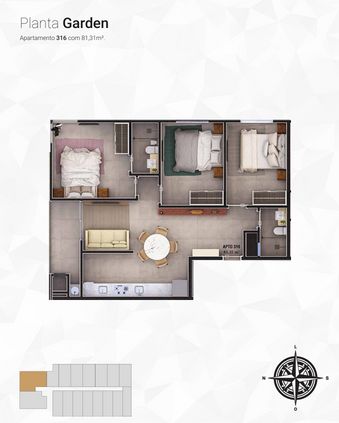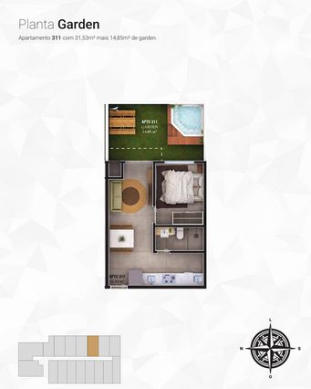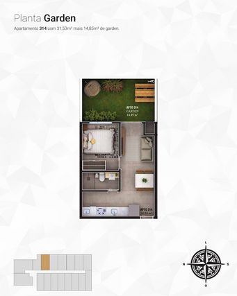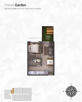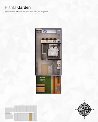 ➡️1 dormitório gardem (30m²) e gardem(7-15m²)
